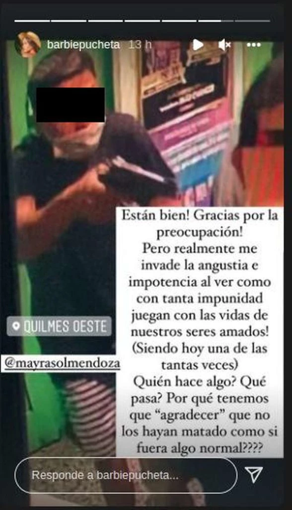 “¿Quién hace algo? ¿Qué pasa? ¿Por qué tenemos que ‘agradecer’ como si fuera algo normal?”, dijo la iunfluencer tras compartir las imágenes de la cámara de seguridad del local. Además, manifestó que la invade “la angustia y la impotencia” porque su papá y su tío no pueden trabajar tranquilos en su agencia de lotería.