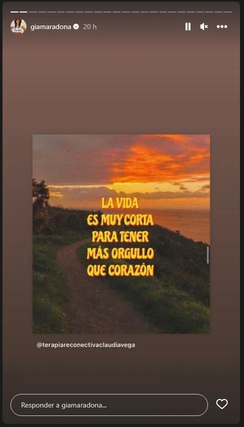 Lo más curioso es que, unas horas antes de que el saludo viera la luz, Gianinna publicó una historia que decía: "La vida es muy corta para tener más orgullo que corazón”.