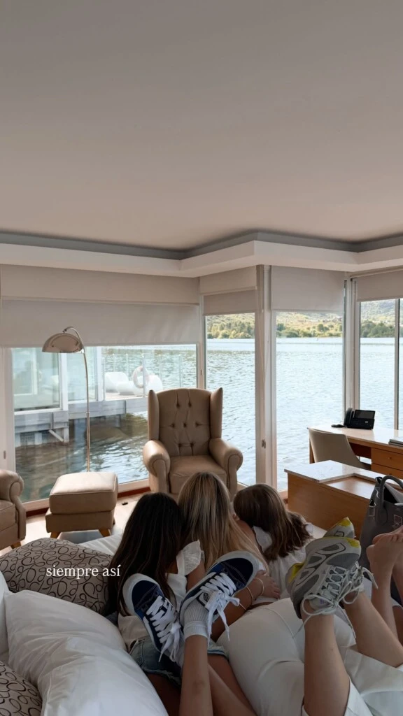 Las nenas parecieron haberla pasado de 10 en escenas familiares y descontracturadas, abrazadas a su mamá en varios momentos, como en esa foto tomada frente a los ventanales del cuarto, con el lago de fondo. Sin posar, sin gestos forzados, lejos de cualquier celebración multitudinaria.