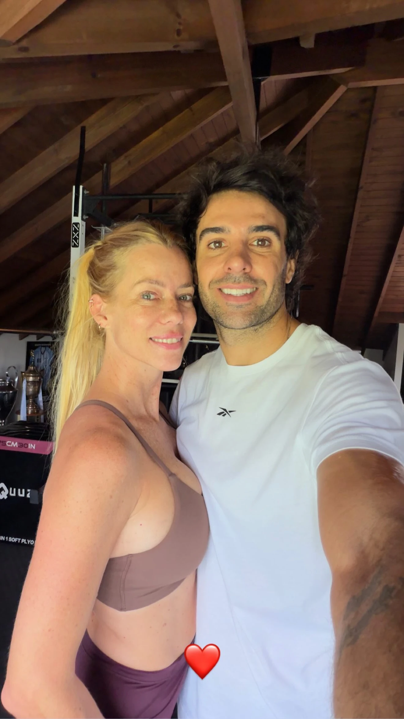 Ese detalle —el corazón sumado al abrazo, en un contexto cotidiano y doméstico como el entrenamiento— es justamente lo que vuelve al posteo una pieza “interpretativa”: no es una producción, no es una alfombra roja, no es un evento. Es una postal simple, de rutina compartida, que en tiempos de rumores suele funcionar como la desmentida más efectiva porque baja el conflicto al terreno de lo real y repetible: “estamos acá, juntos, haciendo lo nuestro”.