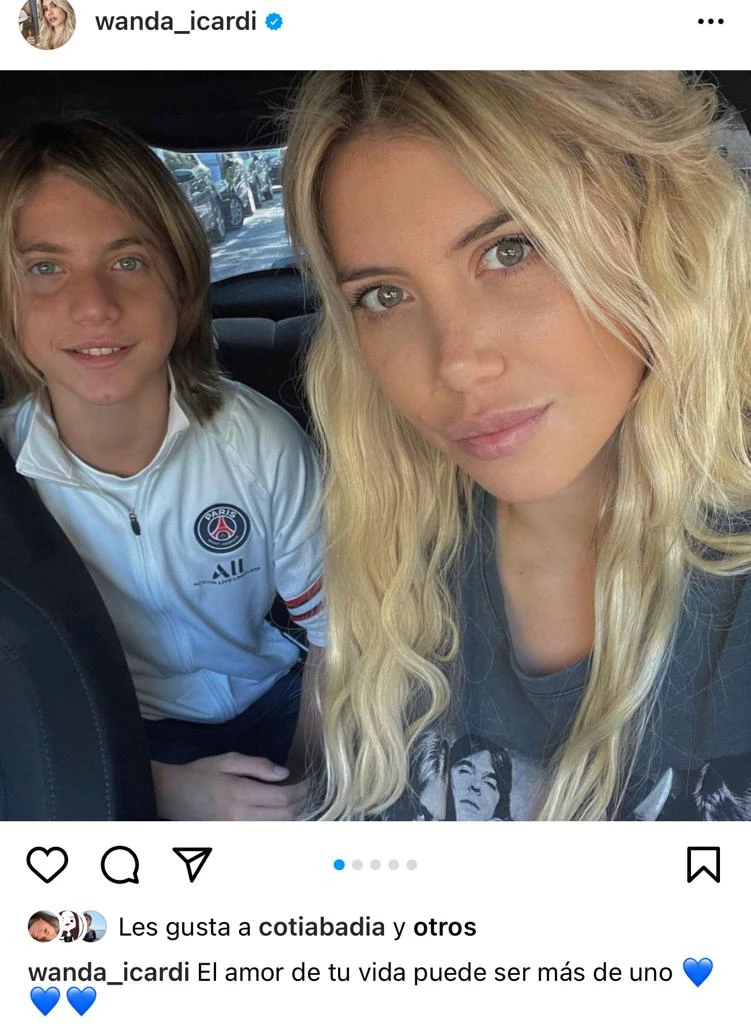 El pie de foto fue más que contundente. "El amor de tu vida puede ser más de uno", sentenció Wanda, manifestando el vínculo especial que mantiene con sus hijos mayores y acompañando su declaración de amor con tres emojis de corazones azules. Su reflexión fue legitimada por la abuela de los chicos, Nora Colosimo, que sin dudar asintió: "Tal cual".