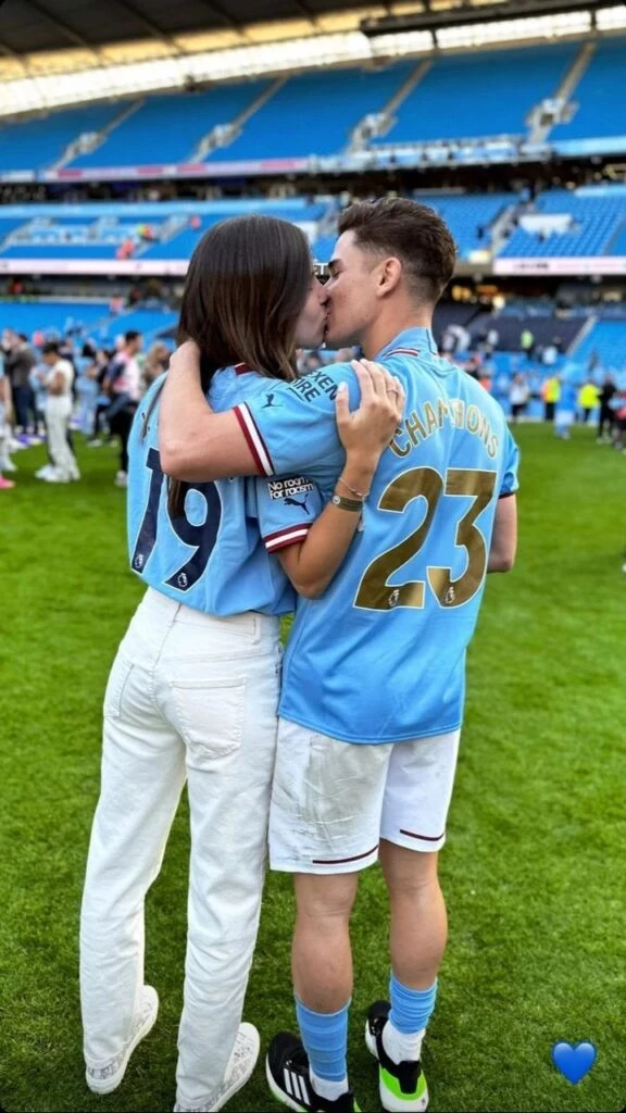 Emilia siempre lo alienta en cada etapa de su vida, de hecho, cuando fue presentado en el Manchester City por primera vez, ella no dudó en comentar un corazón rojo, una araña y una carita de felicidad, hoy con la consagración del título, la pareja se besó y ella subió a sus historias una foto con la pareja de Rodri, el español y compañero de Julián.