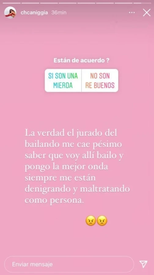 Fiel a su estilo, la mediático le consultó a sus seguidores sobre el jurado, conformado por Ángel de Brito, Pampita, Hernán Piquín y Jimena Barón, y aprovechó para lapidarlos por sus devoluciones. En ese sentido, agregó una encuesta en sus historias donde preguntó si el jurado es "una mierd..." o "son buenos".