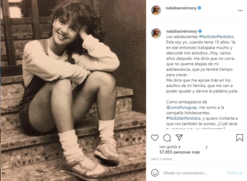 Este domingo, Oreiro compartió una imagen inédita de su adolescencia y sorprendió a sus fans ya que si bien pasaron los años, ella está igual. Junto a su posteo, escribió un contundente mensaje acerca de qué consejo le daría a esa Natalia adolescente: "Esta soy yo cuando tenía 15 años. Ya en ese entonces trabajaba mucho y descuidé mis estudios... Hoy, varios años después, me diría que no corra, que no queme etapas de mi adolescencia y que ya tendré tiempo para crecer".