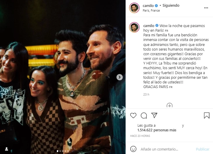 Por su parte, Camilo publicó fotos con algunas de las estrellas que lo saludaron tras el concierto. En dicho posteo, se lo podía ver sonriendo junto a la familia Messi y dejando afuera a Wanda e Icardi. “¡Wow la noche que pasamos hoy París!. Para mi familia fue una bendición inmensa contar con la visita de personas que admiramos tanto, pero que sobre todo son seres humanos maravillosos, con corazones gigantes”!!!. Gracias por venir con sus familias al concierto”, escribió el artista.