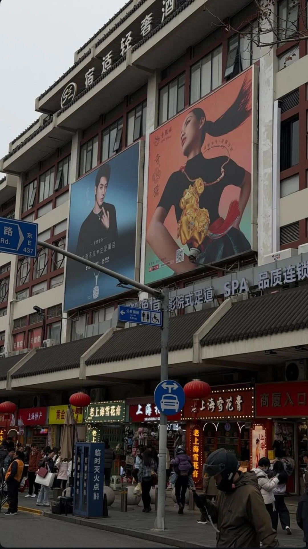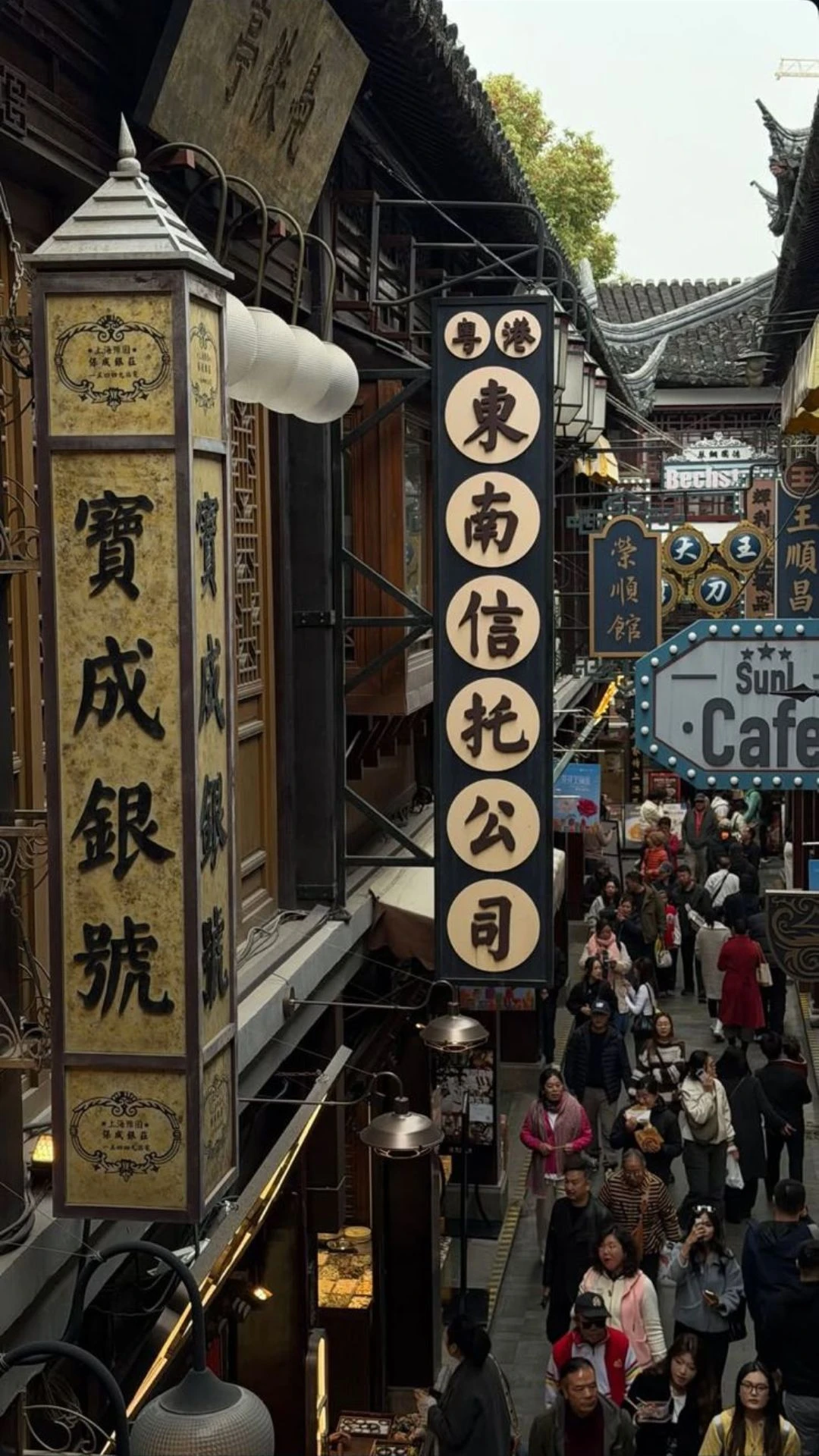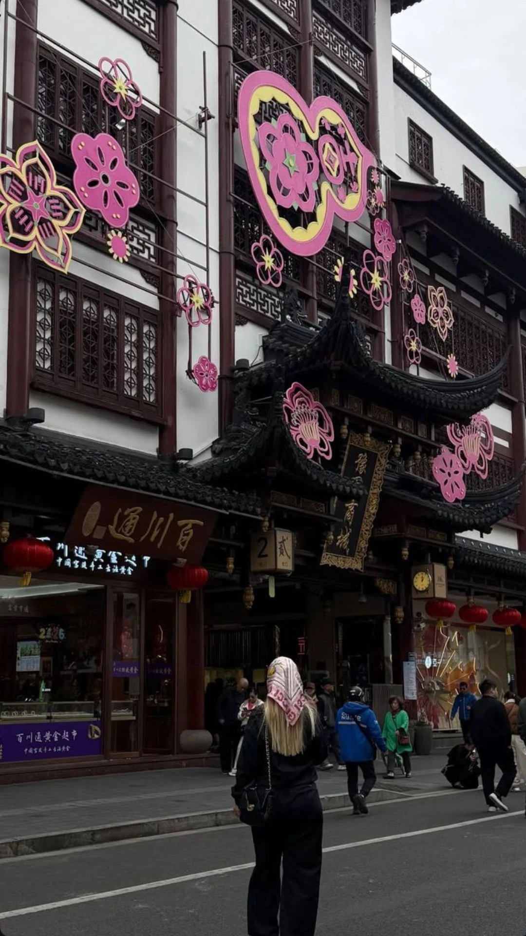 Pero no todo fue vértigo y luces. Wanda también se sumergió en la tradición china, recorriendo calles peatonales, mercados y construcciones típicas con techos de tejas oscuras, faroles colgantes y detalles en madera tallada. Entre locales y turistas, se dejó llevar por una ciudad que combina historia, tecnología y cultura en cada esquina.