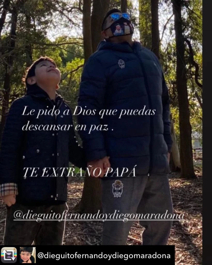 "¡Momentos únicos! Hoy hace 4 meses que estás en el cielo cuidado a Dieguito Fernando", compartió la ex de Maradona en su cuenta de Instagram junto a un video en el que están padre e hijo preparando un asado juntos.