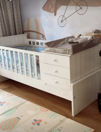 “Su dormitorio está al lado del mío y es el más espacioso de la casa. Está casi todo listo”, detalló Angie. A la hora de referirse a cómo se va a organizar y dónde dormirá el recién nacido, explicó: “No soy muy fanática de la cuna colecho porque me resulta más efectivo ponerlo a dormir en un cochecito con moisés. Va a dormir en ese tipo de cochecito al lado mío y después, más adelante, lo pasaré a su cuarto”.