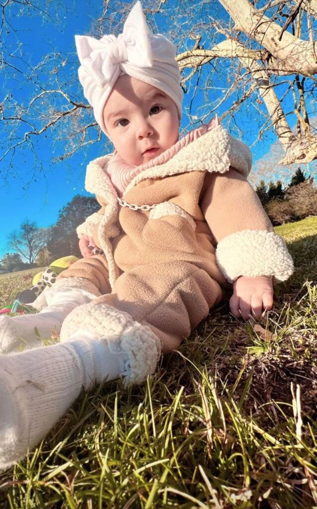 Este fin de semana, la pequeña lució un look total en rosado, muy al estilo Barbiecore. Pantalón de lana, chaqueta con botones y cuello redondo, y medias en el mismo tono, que además, su mamá le combinó con un gorro tipo turbante con moño, que mantenía la paleta de colores.