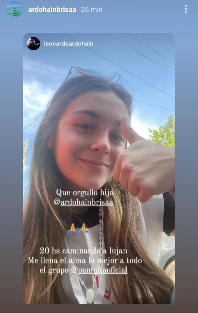 "Somos miles caminando felices", contó la modelo e invitó a sus fans a sumarse en caso de tener algo para agradecer o pedir. También se mostró muy contenta por la participación de su sobrina Brisa que decidió acompañarla en este especial momento.