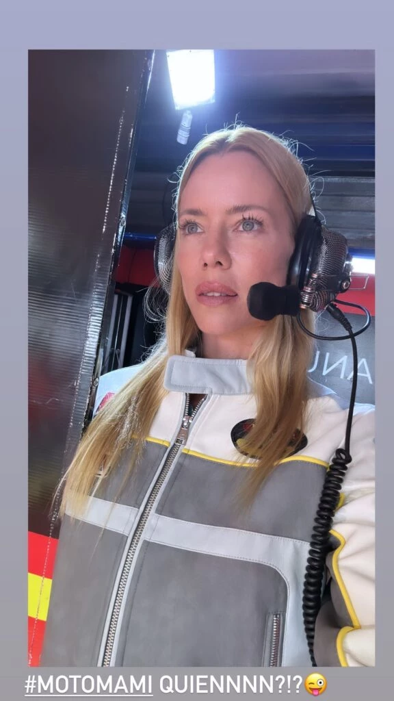 Neumann presumió en sus historias de Instagram lo involucrada que están sus hijas menores en la actividad de su pareja, y dejó ver cómo Allegra le explicaba detalladamente a una amiga cómo funcionaba el mundo de las carreras. Por otro lado, mostró a Sienna muy concentrada con los controles en mano justo antes de que el piloto saliera a la pista.