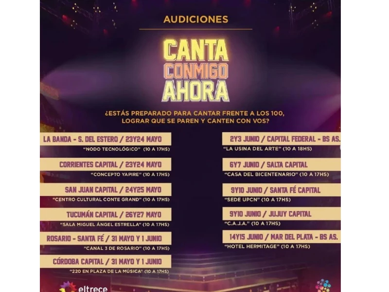 Las audiciones para participar del nuevo programa de televisión de Tinelli serán en: Santiago del Estero, Corrientes, San Juan, San Miguel de Tucumán, Córdoba, Rosario, Cuidad de Buenos Aires, Salta, Jujuy, Santa Fe, Mar del Plata y Mendoza.