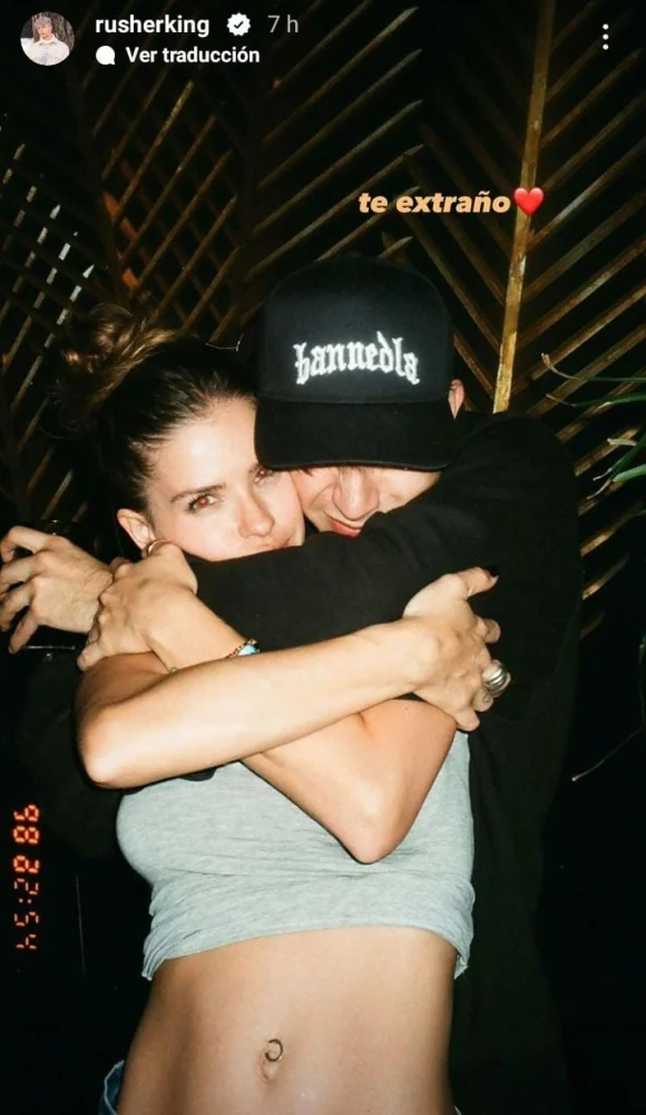 Para expresar lo que sentía, Rusher compartió una foto de él junto a la China, donde se los ve abrazados y muy cariñosos. La historia de Instagram estaba acompañada por un tierno mensaje que decía "Te extraño", dedicado a la actriz.