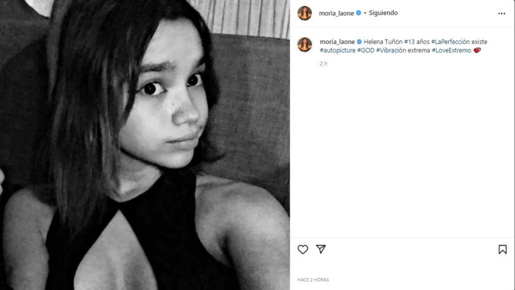 En una nueva publicación en su cuenta de Instagram, la One posteó una selfie en blanco y negro que se tomó una nieta y escribió: "Helena Tuñón, 13 años, la perfección existe". Además, agregó hashtags como "Vibración extrema" y "Love extremo" para expresar su completa adoración por la adolescente que la convirtió en abuela.