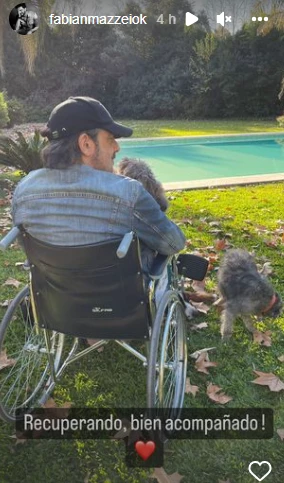 Para su fortuna, Mazzei se encuentra muy bien cuidado por su esposa Araceli y también cuenta con un grupo familiar que lo acompañan en este difícil momento: sus perras. El actor compartió una imagen donde se ve a una de ellas y escribió: "Recuperando y muy bien acompañado".
