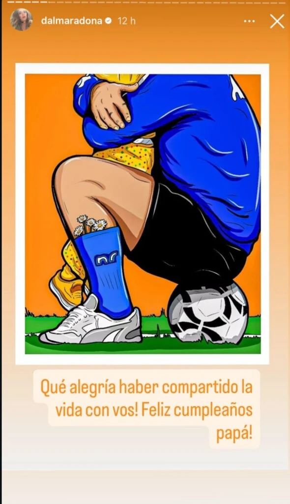Por su parte, Dalma Maradona también eligió las redes para homenajear a su padre. Compartió decenas de historias de Instagram subidas por fanáticos y acompañó una de ellas con la frase: “Qué alegría haber compartido la vida con vos. ¡Feliz cumpleaños, papá!”. En otra publicación agregó: “Te extraño sin parar. Gracias por salvarme una vez más.”