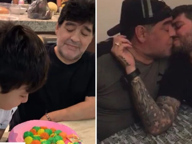 El más pequeño del clan, Diego Fernando, también tuvo su homenaje: compartió un video inédito en el que se lo ve riendo junto a su papá, mientras Maradona intenta mancharle la cara con una torta multicolor. Una escena simple y luminosa, que muchos seguidores destacaron como un recordatorio del costado más tierno del astro argentino.