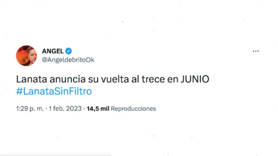 El periodista que confirmó el retorno de Lanata fue el mismísimo Ángel de Brito, el conductor de LAM. A través de Twitter hizo referencia al retorno del periodista a la pantalla de El Trece: "Lanata anuncia su vuelta al trece en JUNIO #LanataSinFiltro", escribió sobre su colega.