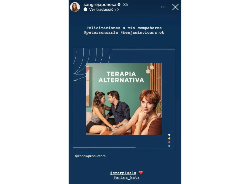 La China estaba muy feliz al enterarse de la nominación de la serie Terapia Alternativa que hizo junto a su ex, Benjamín Vicuña, y Carla Peterson, a los Premios Cóndor y decidió compartirlo en sus historias de Instagram.