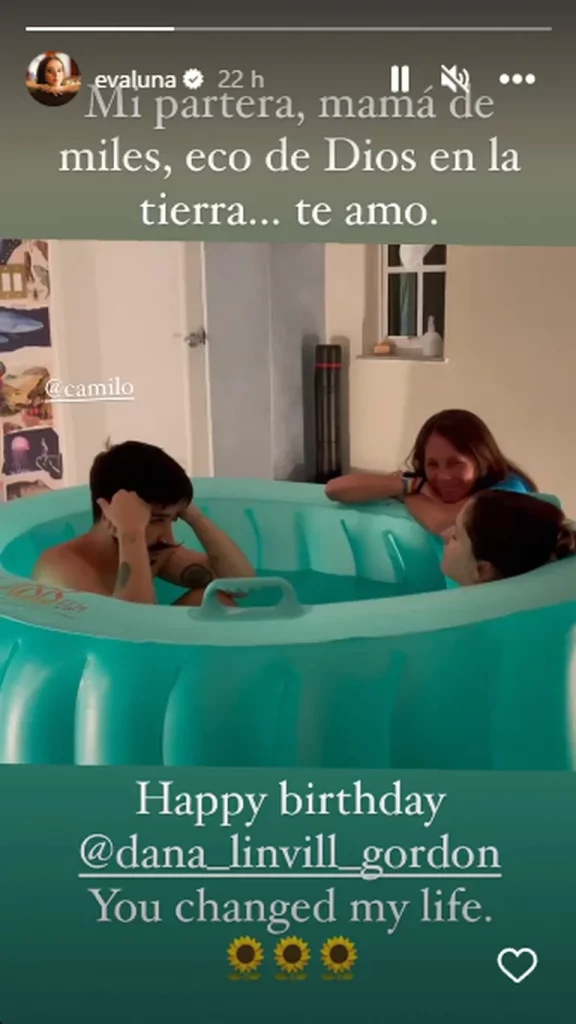 Luego, compartieron en una galería de imágenes una serie de fotos en las que se los podía ver a ambos en una piscina inflable junto a Camilo. Es que el parto de la cantante fue en una casa, la misma decisión que tomaron en el pasado celebridades como Verdeliss, Ashley Graham o Gisele Bündchen.