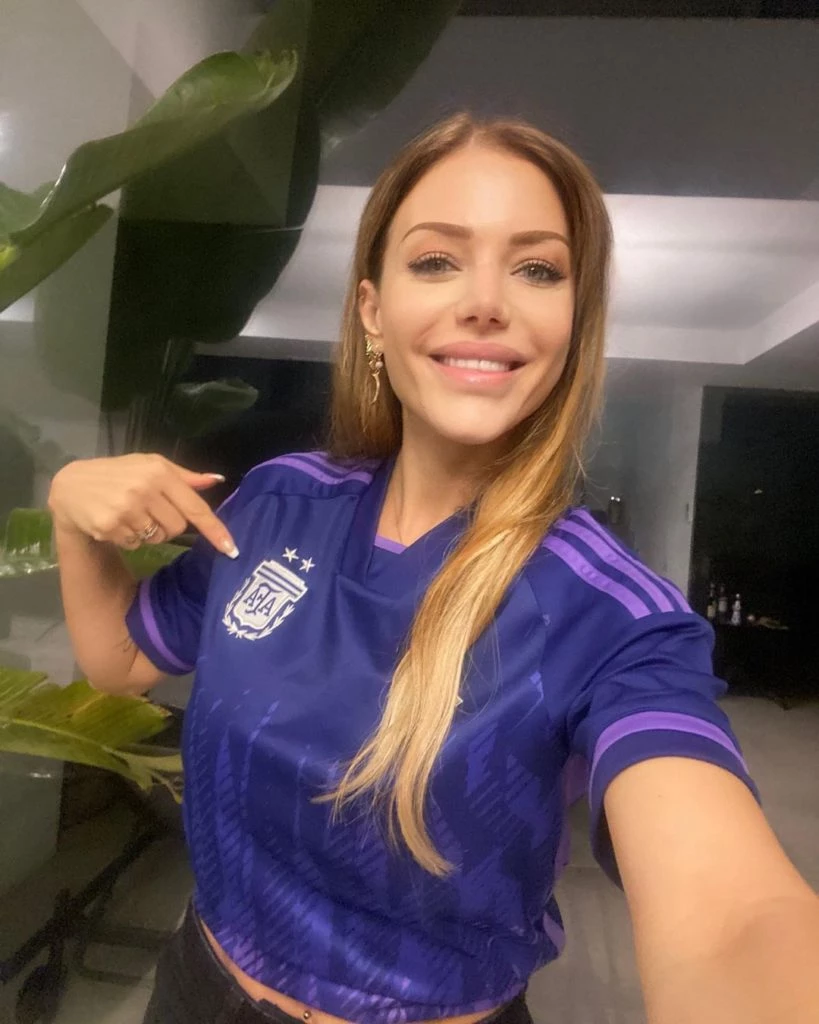 En el día de ayer, inesperadamente Evangelina compartió una foto con la camiseta oficial del equipo de Lionel Scaloni y escribió: "Vamos Argentinaaa". Así la influencer quiso dejar en claro su apoyo a la bandera albiceleste a la distancia.