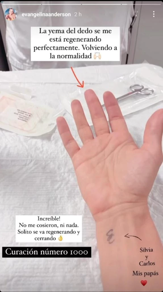 Ya en las instancias finales de su recuperación, compartió los resultados y aseguró: "La yema del dedo se me está regenerando perfectamente. Volviendo a la normalidad".