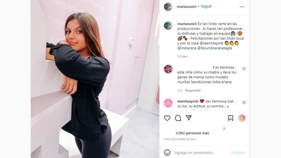 En su primer paso en el mundo del modelaje, India tuvo todo el apoyo incondicional de ambos padres. María Susini, cual madre orgullosa, compartió este momento especial de su hija en las redes sociales con un tierno mensaje. “Es tan lindo verte en las producciones. Lo hacés tan profesional, lo disfrutás y trabajás en equipo”, le dedicó a su hija.