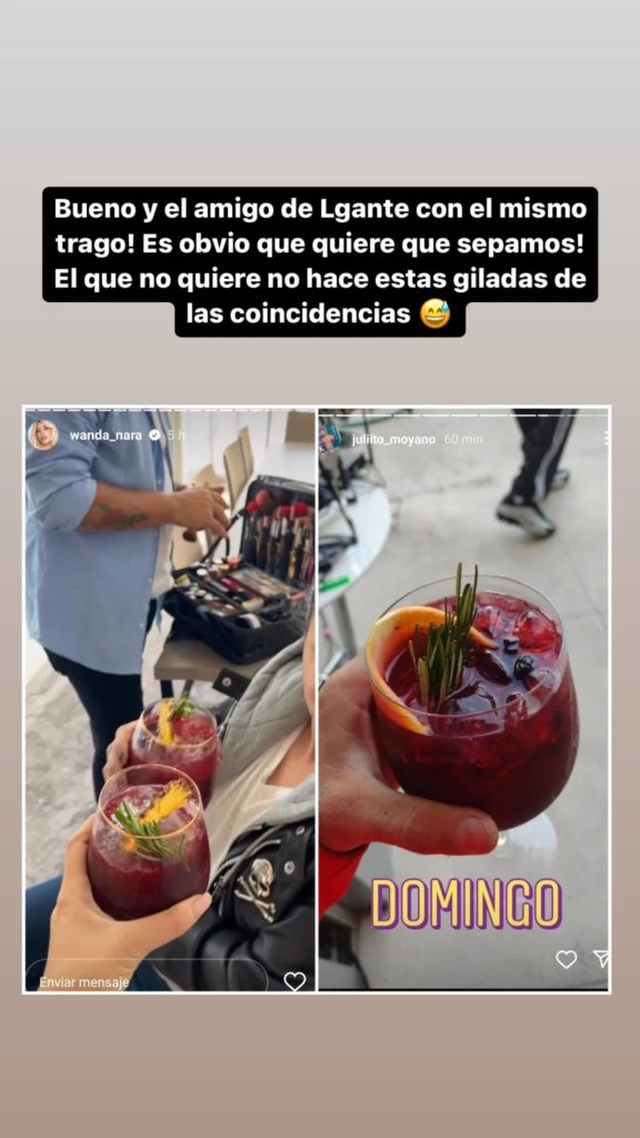 También aseguran que ambos pasaron la tarde juntos ya que el mejor amigo del cumbiero se mostró con exactamente el mismo trago que mostró Nara en su cuenta de Instagram.