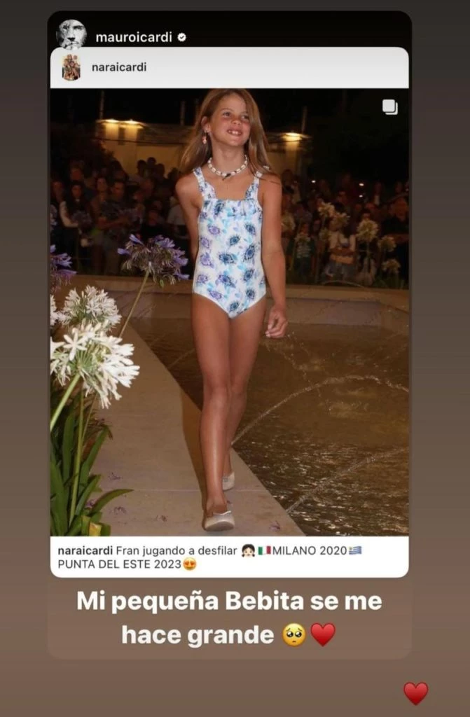 Francesca Icardi inició su camino en el mundo del modelaje. La nena de 7 años sigue los pasos de su mamá, Wanda, y su tía Zaira. Desde Punta del Este desfiló por primera vez y deslumbró a todos los presentes.