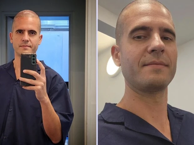 Con una postura también de dar a conocer más información sobre este tipo de tratamiento, que cada vez se habla más al respecto, Peralta dio detalles sobre el paso a paso: “Llegué en ayunas, me raparon a cero (nunca en la vida me había pelado) y fueron 8 horas en quirófano, donde me colocaron 2600 folículos (que me sacaron de la nuca, mi zona donante más fuerte, y pusieron en la coronilla)”.