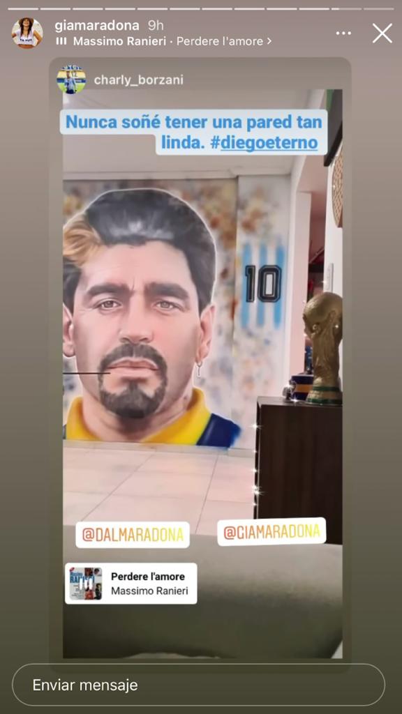 También subió una de sus fotos favoritas de su padre: la alborotada melena del astro en sus comienzos con la pelota. "Los rulos y él", destacó Gianinna en otra muestra del amor que prometió seguir compartiendo en su memoria y "para felicidad del pueblo".