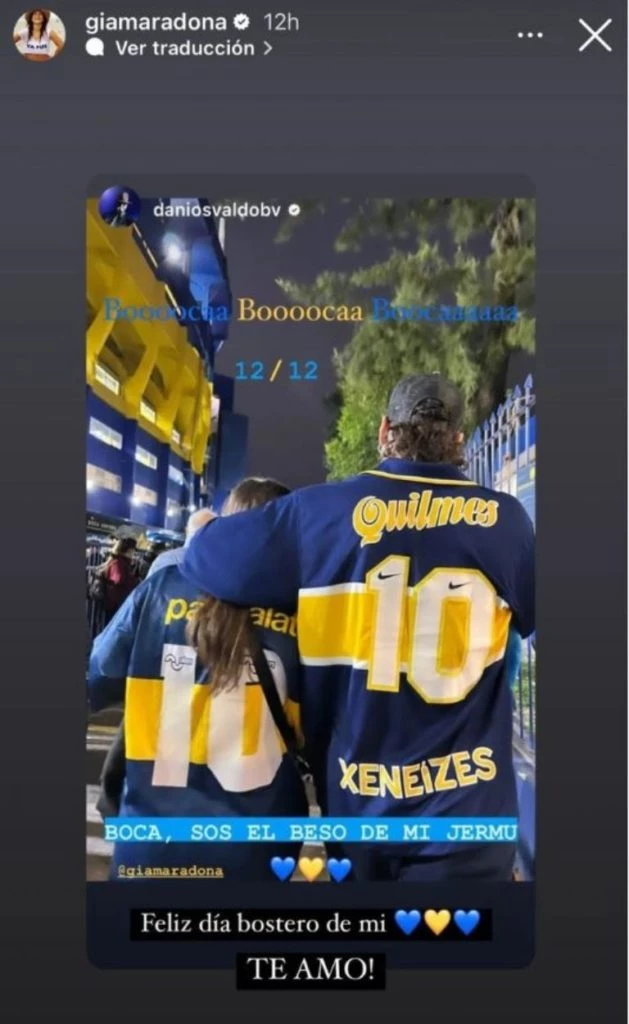“Boca sos el beso de mi jermu”, escribió Daniel Osvaldo en la imagen en donde aparece de espaldas y abrazado a Gianinna durante el festejo por el Día del hincha de Boca Juniors. Ella agregó: “Feliz día bostero de mi corazón, te amo”. De esta forma confirmó que todavía hay amor entre ellos.