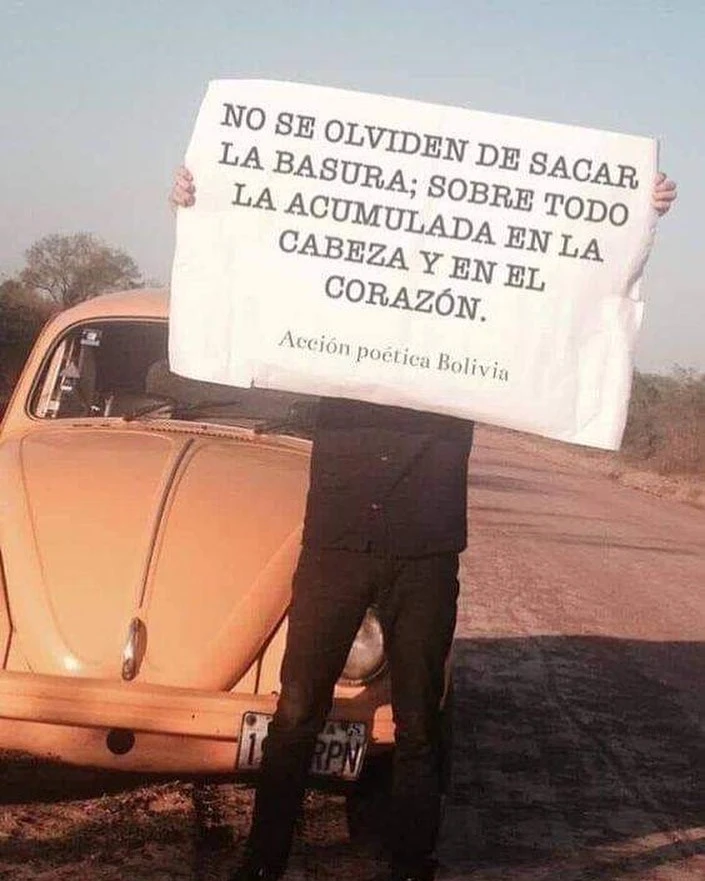 En vez de una foto suya o de sus hijos –algo habitual en su feed–, la empresaria eligió una imagen de Acción Poética Bolivia. En la misma se ve a una persona en una ruta desierta sosteniendo un cartel firmado por el movimiento que surgió hace 25 años en México.