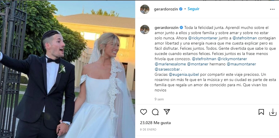 "Antes de conocer a Stefi hablé contigo a preguntarte si sabías algo de ella”, escribió en Instagram. “La noche que la conocí te apareciste al restaurante solo a hacer el gesto de que estabas como vigilando y te fuiste. Una de tus miles de ocurrencias”, recordó Ricky Montaner.