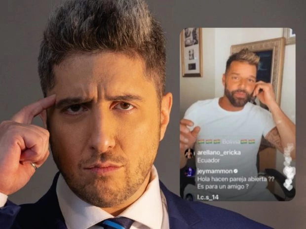 “Hola, ¿hacen pareja abierta? Es para un amigo”, indagó Mammon, quien le planteó la posibilidad de sumarse al matrimonio del cantante con el artista plástico Jwan Yosef. Si bien no recibió respuesta de Ricky, Jey capturó el momento en el que su consulta salió entre los miles de comentarios que recibió el artista y la publicó en su cuenta de Twitter. “Si pasaba, pasaba”, escribió pícaro.