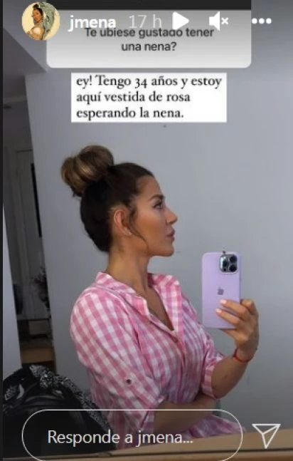 La actriz decidió tomarse una fotografía con una camisa rosa y responder alegre a su fan, “Ey! Tengo 34 años y estoy aquí vestida de rosa esperando la nena”. Así Jimena Barón estaría dispuesta a agrandar la familia y dar una hermanita o hermanito a Morrison.