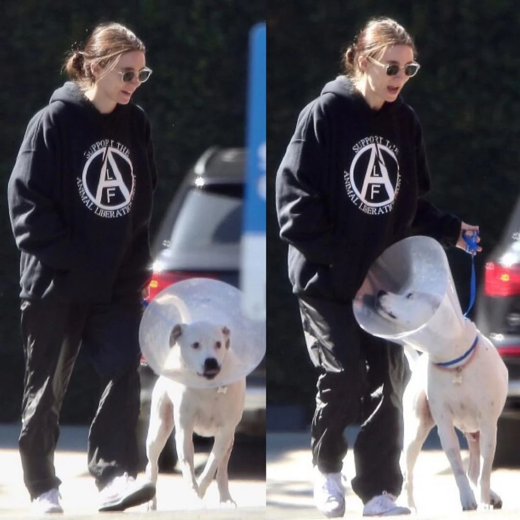 Hace 13 años, el actor rescató de la muerte a una pitbull. Con el tiempo descubrió que era alérgica al sol. Ahora, junto a su novia Rooney Mara cuidan de Soda poniéndole un traje que la protege de los rayos solares.
