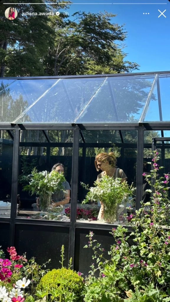 “Amo las flores”, confesó feliz al mostrar cómo quedó uno de los arreglos que seguramente ya debe estar decorando alguno de los ambientes de la mansión patagónica de la familia.