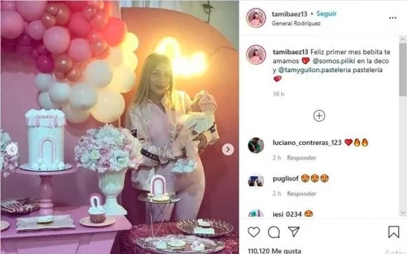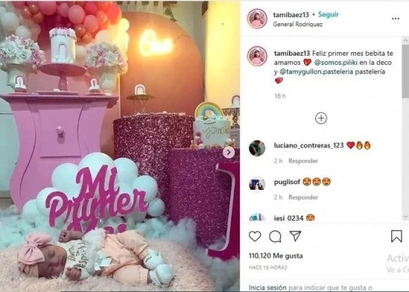 "Feliz primer mes bebita, te amamos", escribió la pareja de Elian Ángel Valenzuela -nombre real del cantante de Cumbia 420- en el pie de sus publicaciones donde las fotografías dejan ver que el festejo no tuvo nada que envidiarle a un cumpleaños de 15.