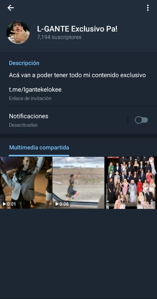 En la descripción del grupo L-Gante expresó, "Acá van a poder tener todo mi contenido exclusivo" y dejó a la vista el enlace de invitación para que cualquier persona que se una pueda invitar a sus amigos o conocidos a participar. También los usuarios podrán activar la campanita de notificaciones para enterarse minuto a minuto lo que el joven comparta.