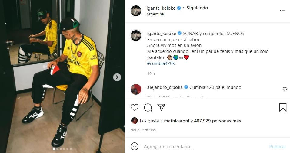 Tras este sencillo realizó una colaboración con el productor Bizarrap, siendo la Music Session número 38 y quienes no lo conocían comenzaron a escucharlo en todos lados, tanto dentro como fuera del país. En la actualidad L-Gante es una estrella internacional con más de 4,2 millones de seguidores, viéndose rodeado de otras jóvenes proezas como Tini Stoessel, Lali Espósito o Duki.