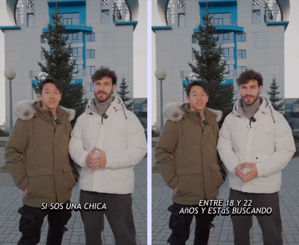 El video en cuestión se trata de una convocatoria a “chicas de entre 18 y 22 años” para ser parte de un “programa internacional de empleo en Rusia, con un salario que oscila entre 860 y 1000 dólares”. Allí se puede ver a Nico y el “Chino”, recorriendo las instalaciones del lugar que queda en la región de Tartaristán.