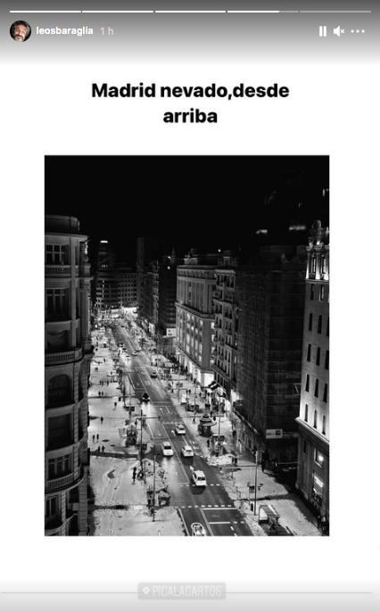 Luego, el actor compartió las exclusivas vistas que tenían desde allí de las calles de Madrid cubiertas de nieve y de las cúpulas que los rodeaban.