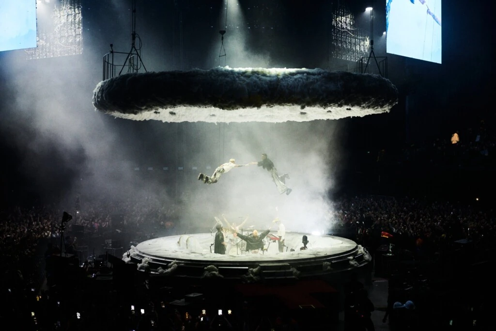 “Es como un jacuzzi que explotó, como una onda expansiva, como con una nube encima. Nosotros cantamos ahí arriba. ¿Sabes lo alto que estábamos? El terror que te da. Yo tengo terror a las alturas”, dijo Ca7riel explicando cómo fue ese show y el miedo que le generaba. A esto Paco completó: “Teníamos miedo de volar, pero volamos. No había escenario. Estaba la banda en el jacuzzi y nosotros cantábamos volando por encima”.