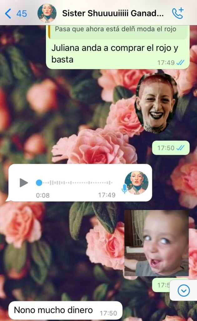 Junto a esos mensajes, la hermana de la participante más polémica de GH publicó capturas de sus chats de WhatsApp. Y en la primera de esas charlas se puede leer como ella le dice a su hermana que vaya a comprarse el vestido rojo. "No, no, mucho dinero", le contestó Juliana.
