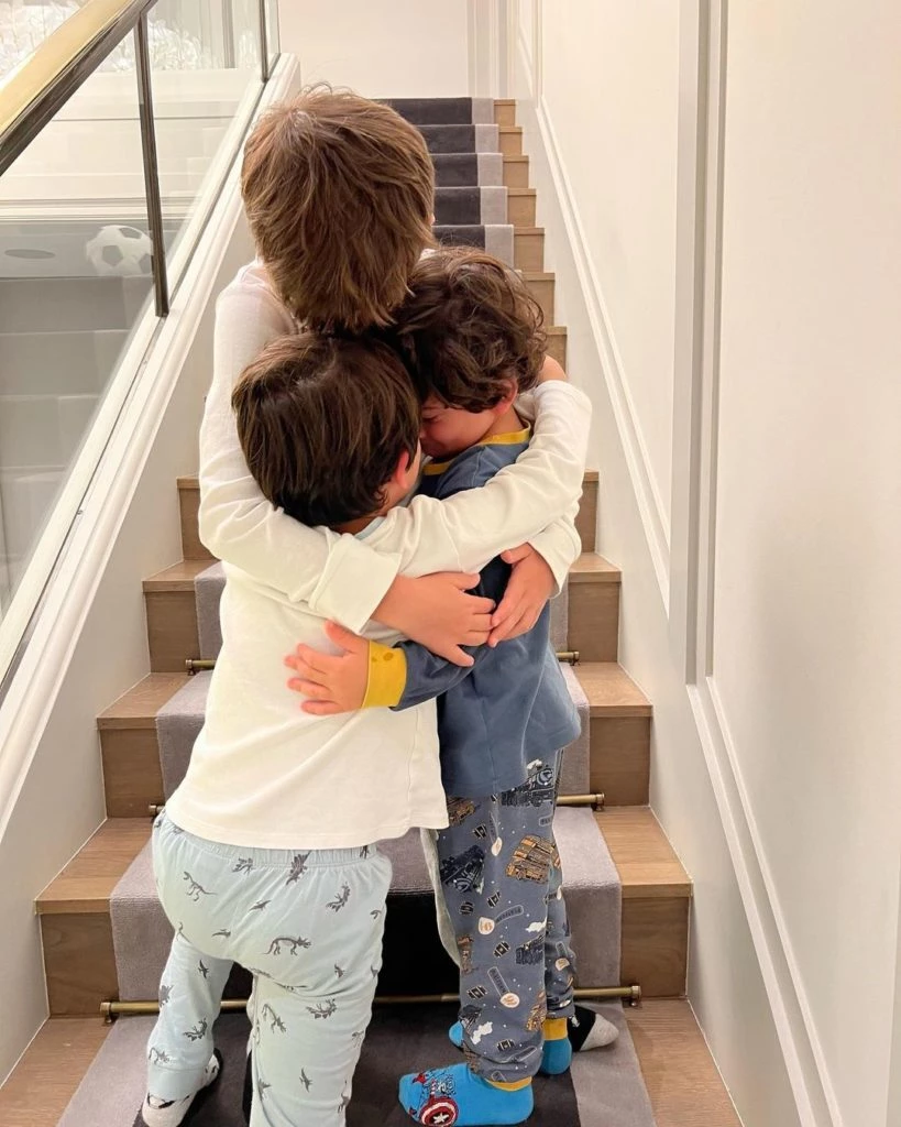 Antonela Roccuzzo intentando pasar más tiempo con sus hijos,Tiago Mateo y Ciro en Francia, decidió incribirse a ella y a los tres niños a clases particulares de tenis.