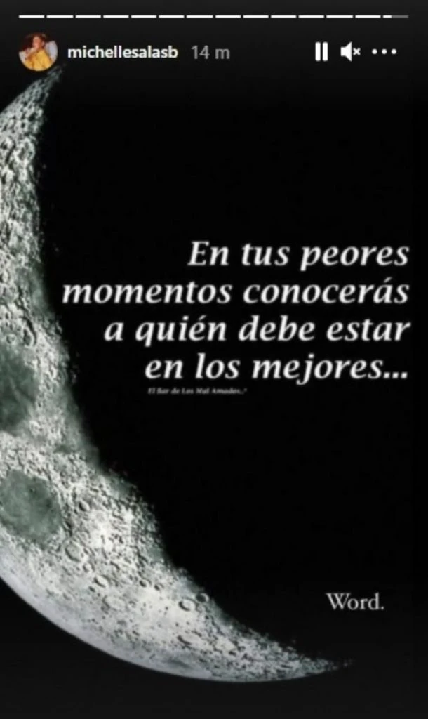 Salas escribió en sus redes sociales: “En tus peores momentos conocerás a quién debe estar en los mejores”, y acompañó el texto con la imagen de una luna.
