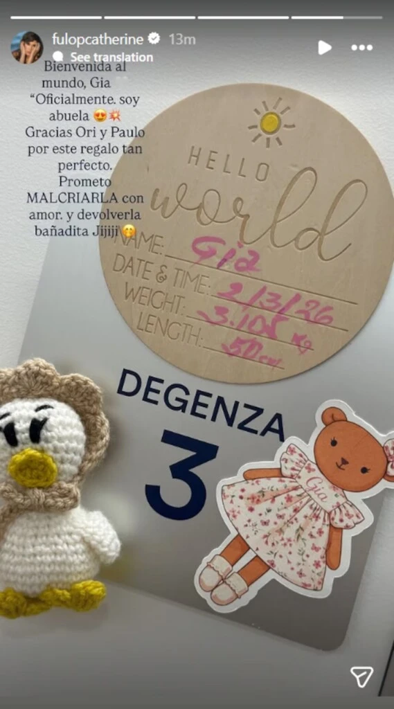 Desde sus historias de Instagram, la actriz venezolana eligió una imagen cargada de simbolismo: el clásico cartel hospitalario con los datos de la recién nacida. Allí se podía leer que Gia llegó al mundo el 2 de marzo, con un peso de 3,105 kilogramos y 50 centímetros de largo. Junto a esa postal, escribió: “Bienvenida al mundo, Gia”.