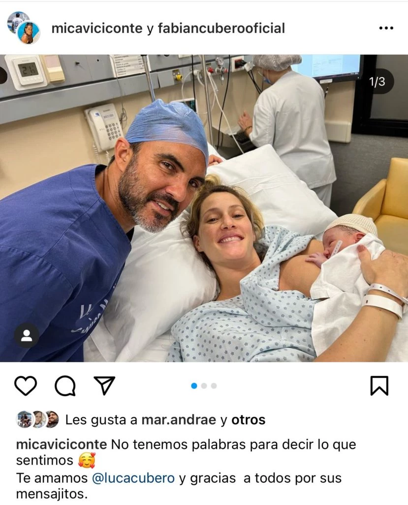Tanto Mica como Poroto escribieron "No tenemos palabras para decir lo que sentimos. Te amamaos Luca y gracias a todos por sus mensajitos", junto con las primeras fotos del niño. Automáticamente, el posteo se llenó de comentarios de fanáticos, amigos y usuarios que quisieron expresarles sus buenos deseos.