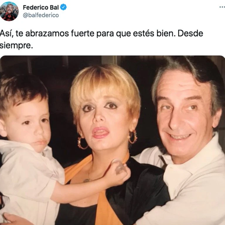 En las últimas horas, el actor se hizo presente a través de sus redes sociales con un emotivo posteo. Compartió una imagen en la que se lo ve a él de chiquito, a upa de Carmen y con Santiago abrazándolos a los dos. “Así, te abrazamos fuerte, para que estés bien. Desde siempre”.